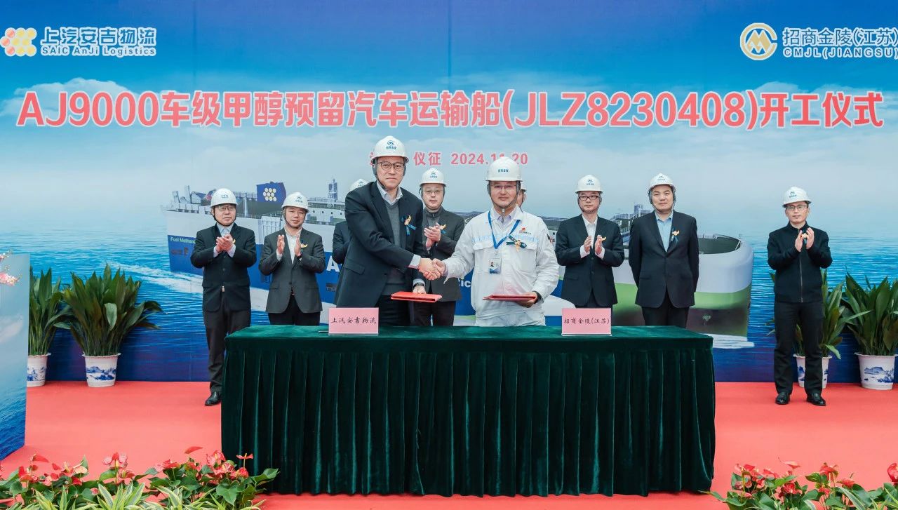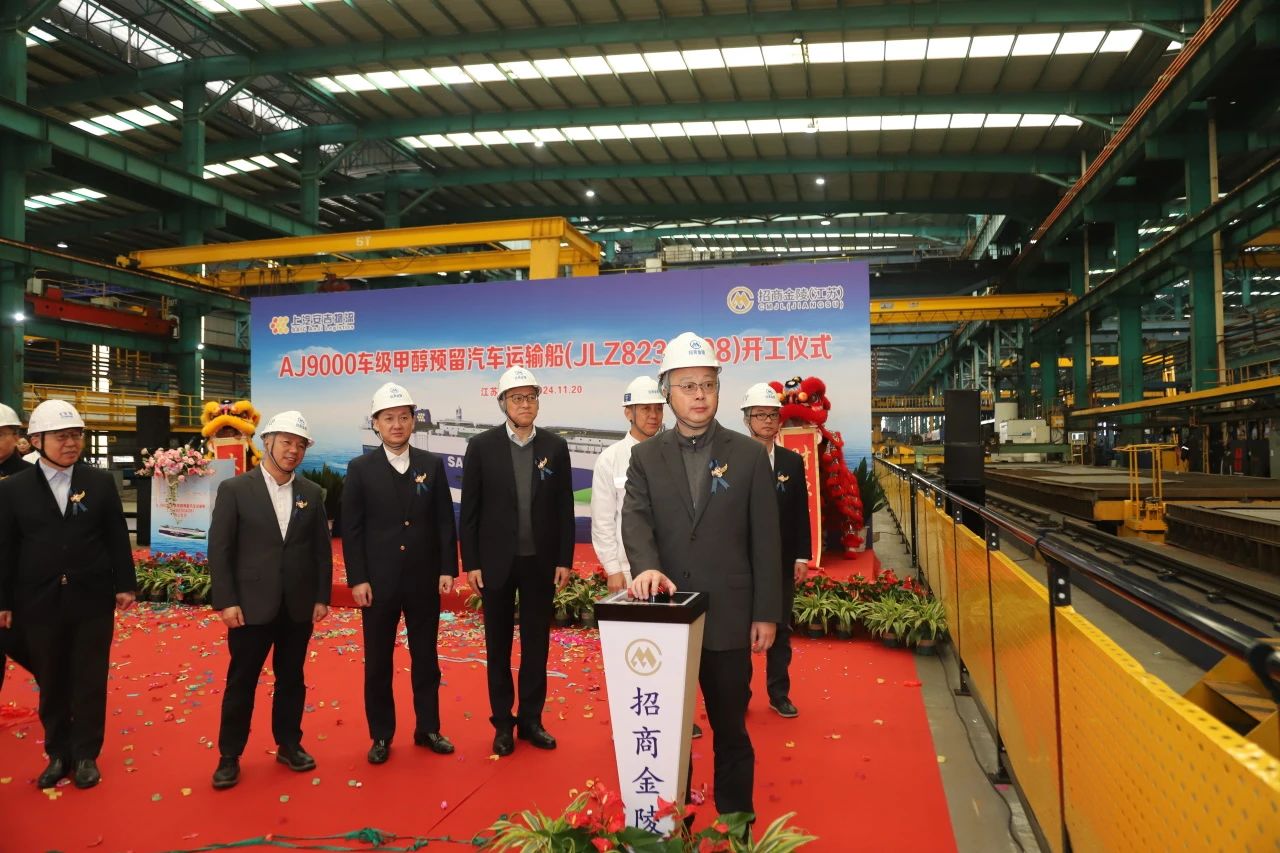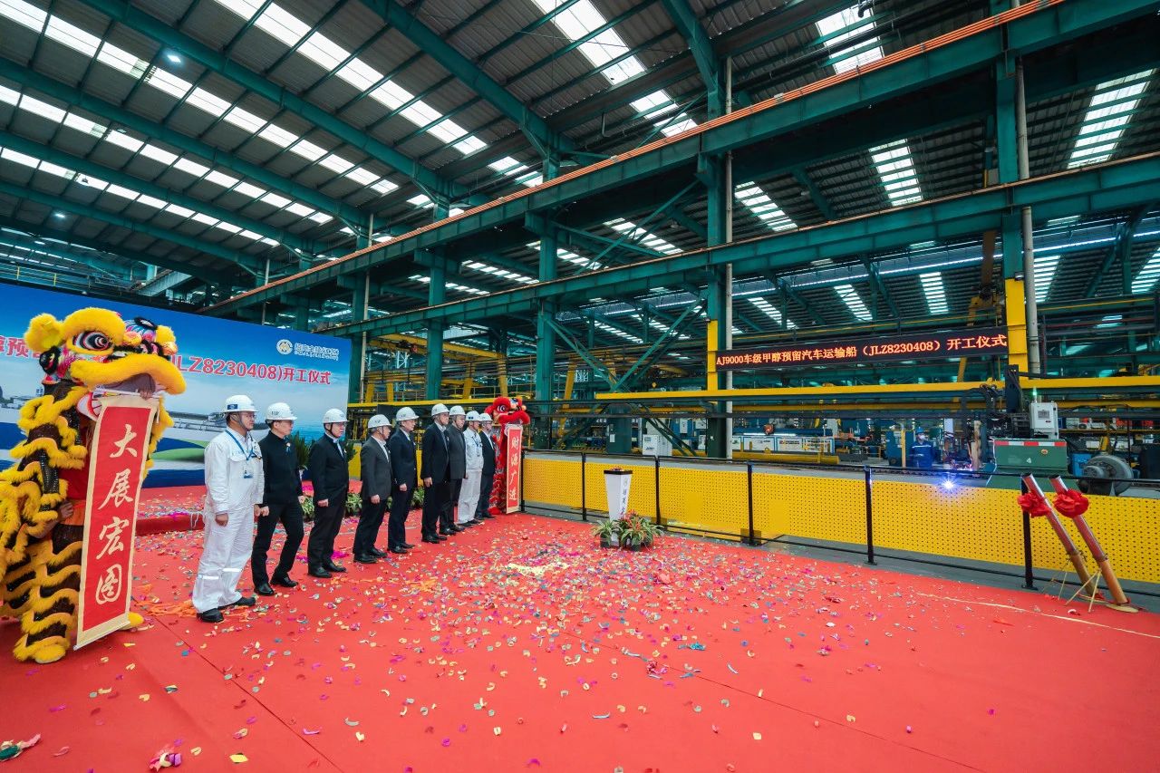 新船钢板经验船师勘验通过后,庄菁雄总经理启动点火按钮。标志着AJ9000车级甲醇预留汽车运输船(JLZ8230408)正式进入建造阶段。