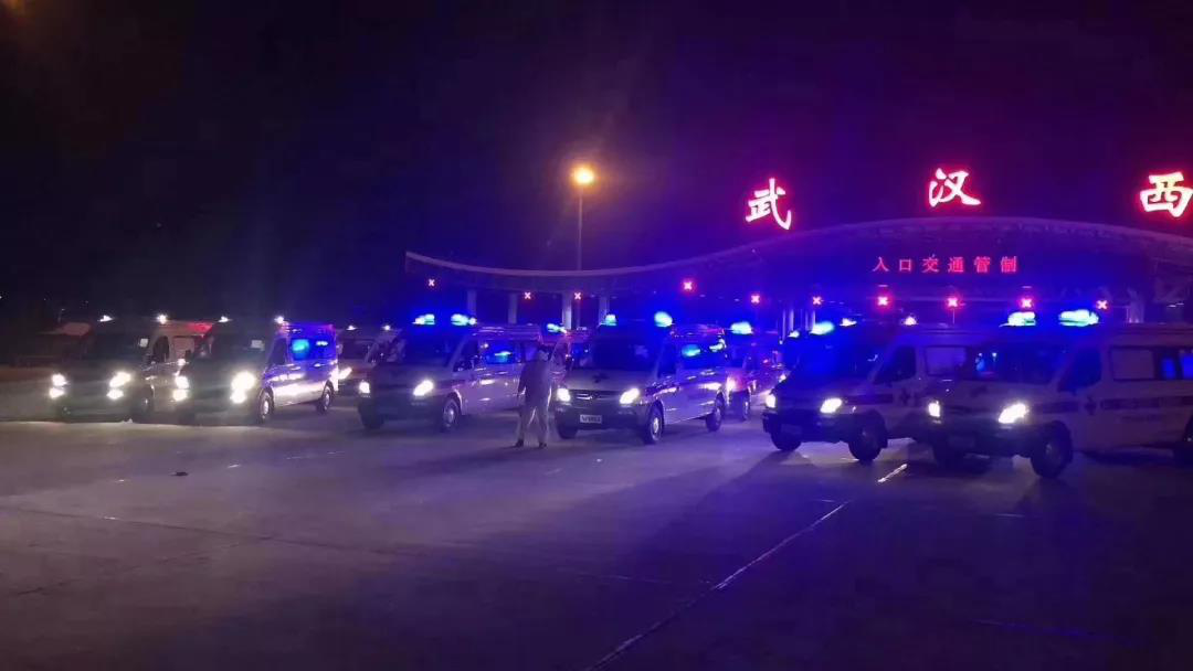 5.今天(6日)早晨7点半,第三批25台负压救护车也已出发。