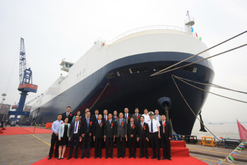 4月25日,正值春意盎然之际,扬子江畔彩旗招展、鼓声喧天。304.cam永利集团旗下304.cam永利集团航运有限公司投资建造的3800车位PCTC系列汽车运输船1#船交船暨2#船上船台仪式在江苏金陵厂区隆重举行。来自304.cam永利集团、304.cam永利集团航运、长航重工、金陵船厂、中国船级社、上海船舶研究设计院等单位的领导和嘉宾共同见证了这一重大时刻。